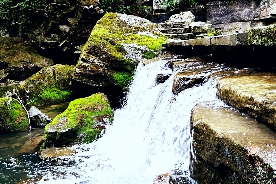 黎坪景区内的中华龙山,更是让人叹为观止。这座形成于四五亿年前的奥陶纪的龙山,岩石外貌沟壑纵横,山体蜿蜒曲折,恰似神龙降世。红褐色的山体岩石,在阳光下熠熠生辉,犹如龙鳞般闪灼。奇石鳞次栉比,化石星罗密布,每一处都充满了神奇与神秘。