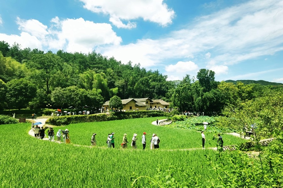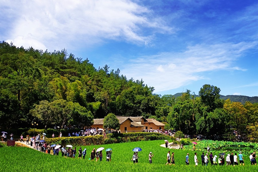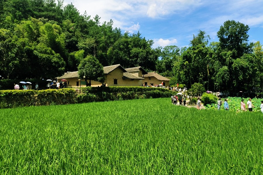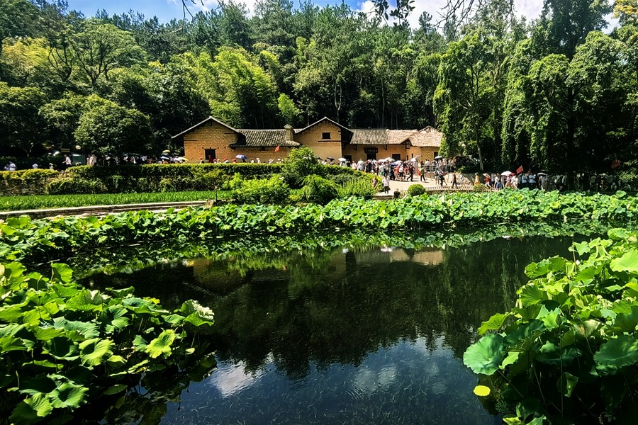 韶山冲位于湖南省湘潭市韶山市,是一个景物秀丽的地方,这里群山围绕、绿树翠竹,在一片松竹掩映的斜坡上,坐落着伟大首脑毛主席的故宅。沐日有幸前往旅行,瞻仰伟人雄姿,近距离感受一代伟人骄人的风范。(大梵宇矿 王煊钰)