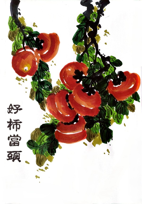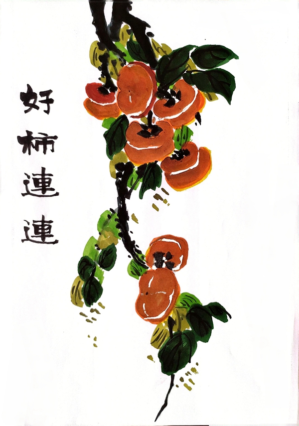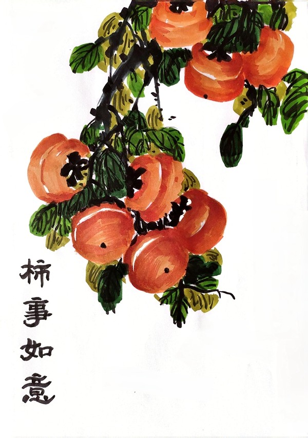 沈渊博绘画:柿柿如意