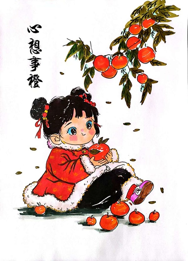 沈渊博绘画:蛇年大吉 心想事“橙”