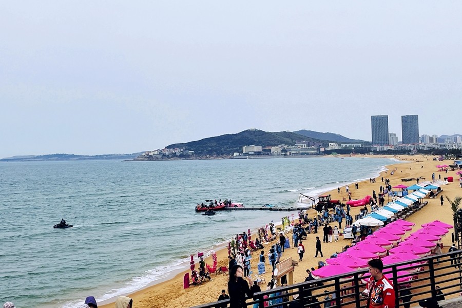 威海位于山东半岛最东端,北、东、南三面濒临黄海,北纬 37° 的黄金纬度付与了它四序明确的诗意,金色的沙滩与湛蓝的海水交织在一起,组成了一幅漂亮的海景,让人陶醉其中。(孟村矿 孙超)